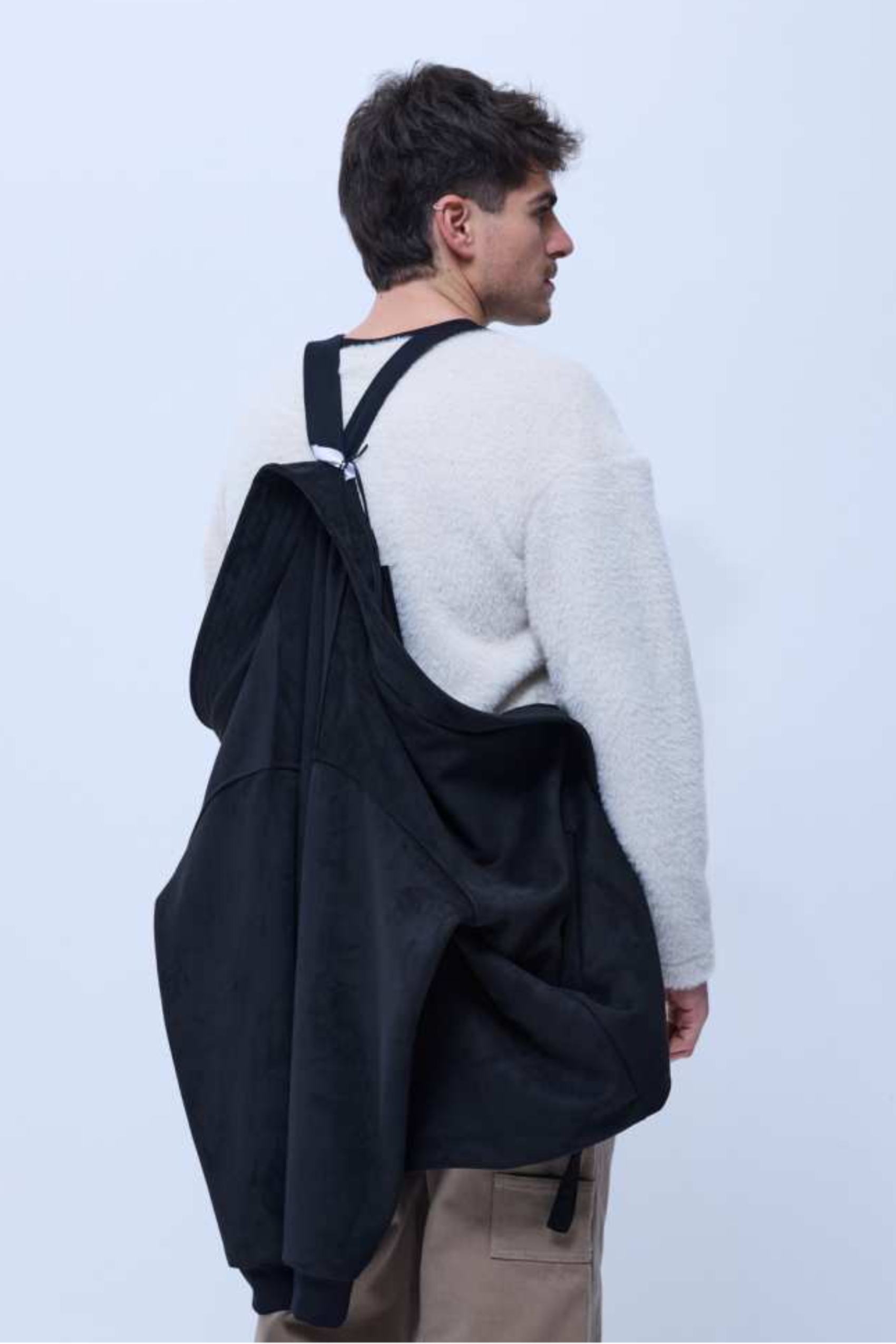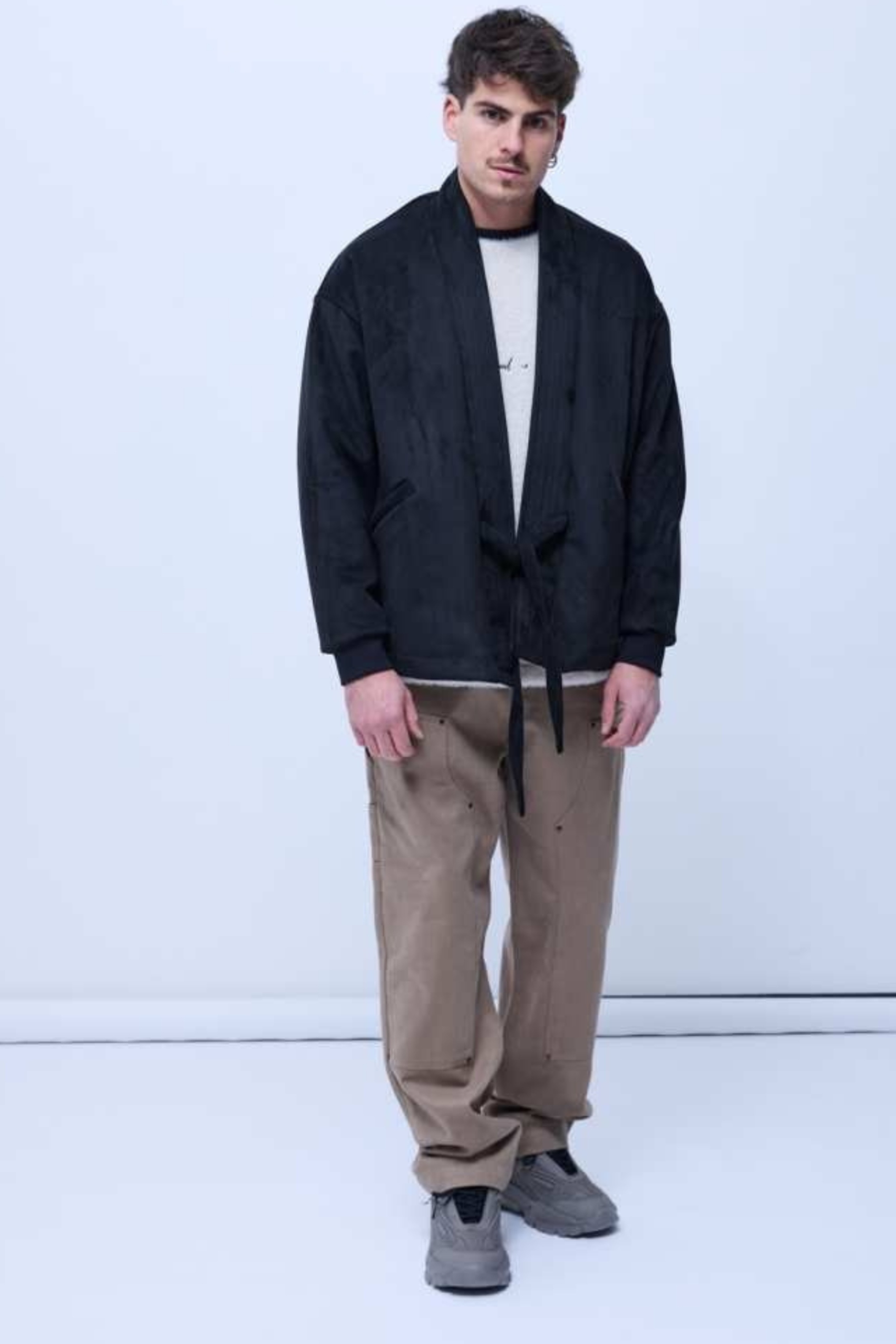 Kimono with braces, evokes the sounds that reverberate in clubs.