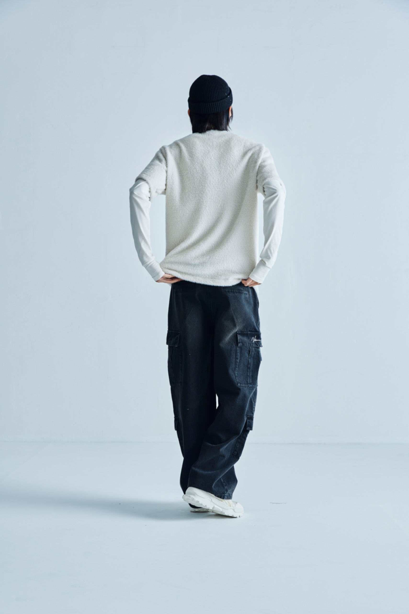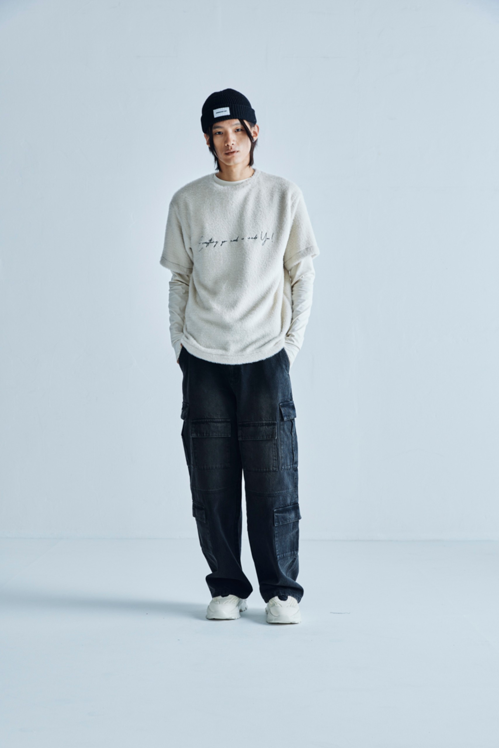 Fluffy tee with embroidery on front; perfect fabric for those who are always ready to go out, even when the sun has set