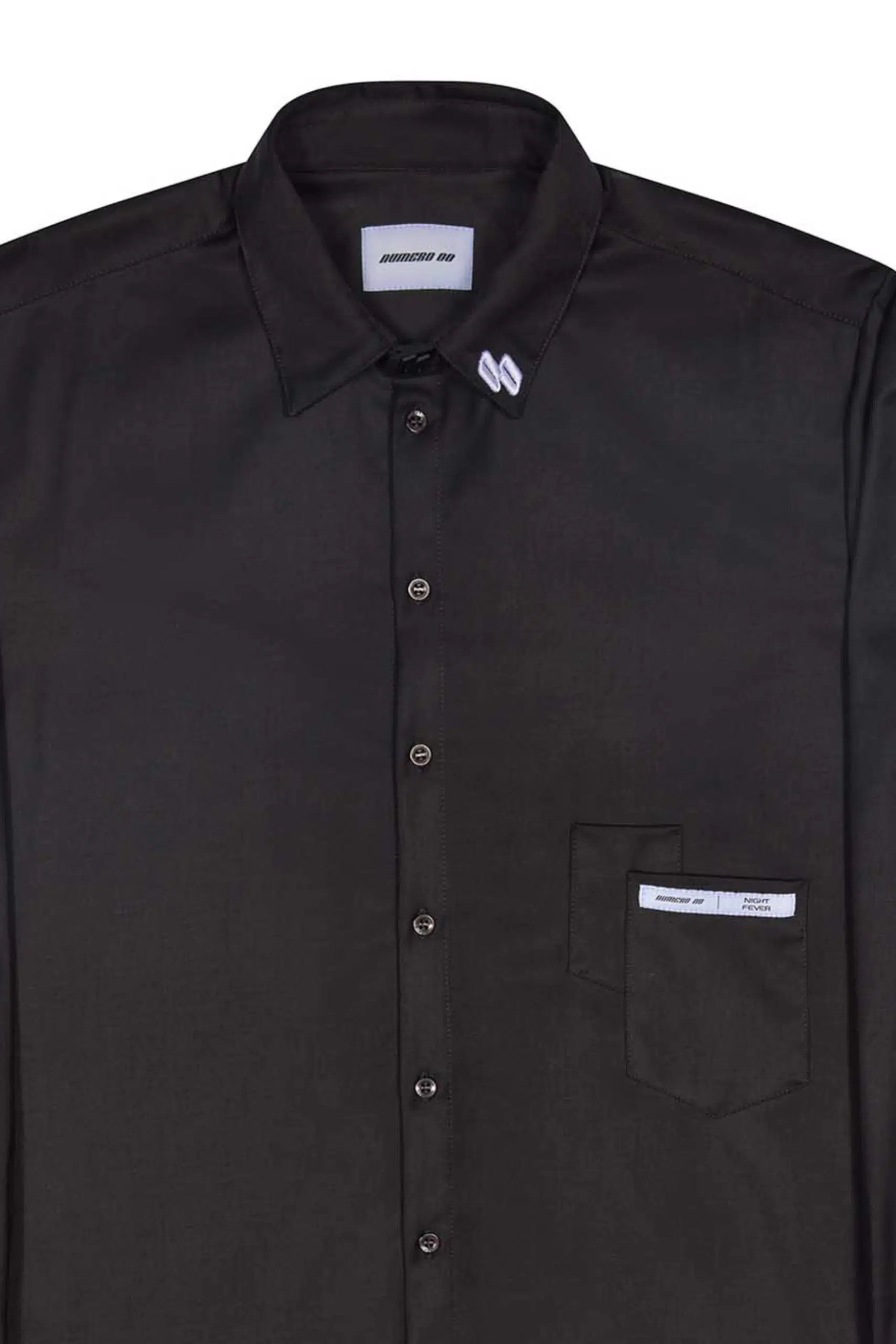 Shirt with logo buttons, embroidery and label, referring to that atmosphere of anticipation and energy that you feel on Saturday night.