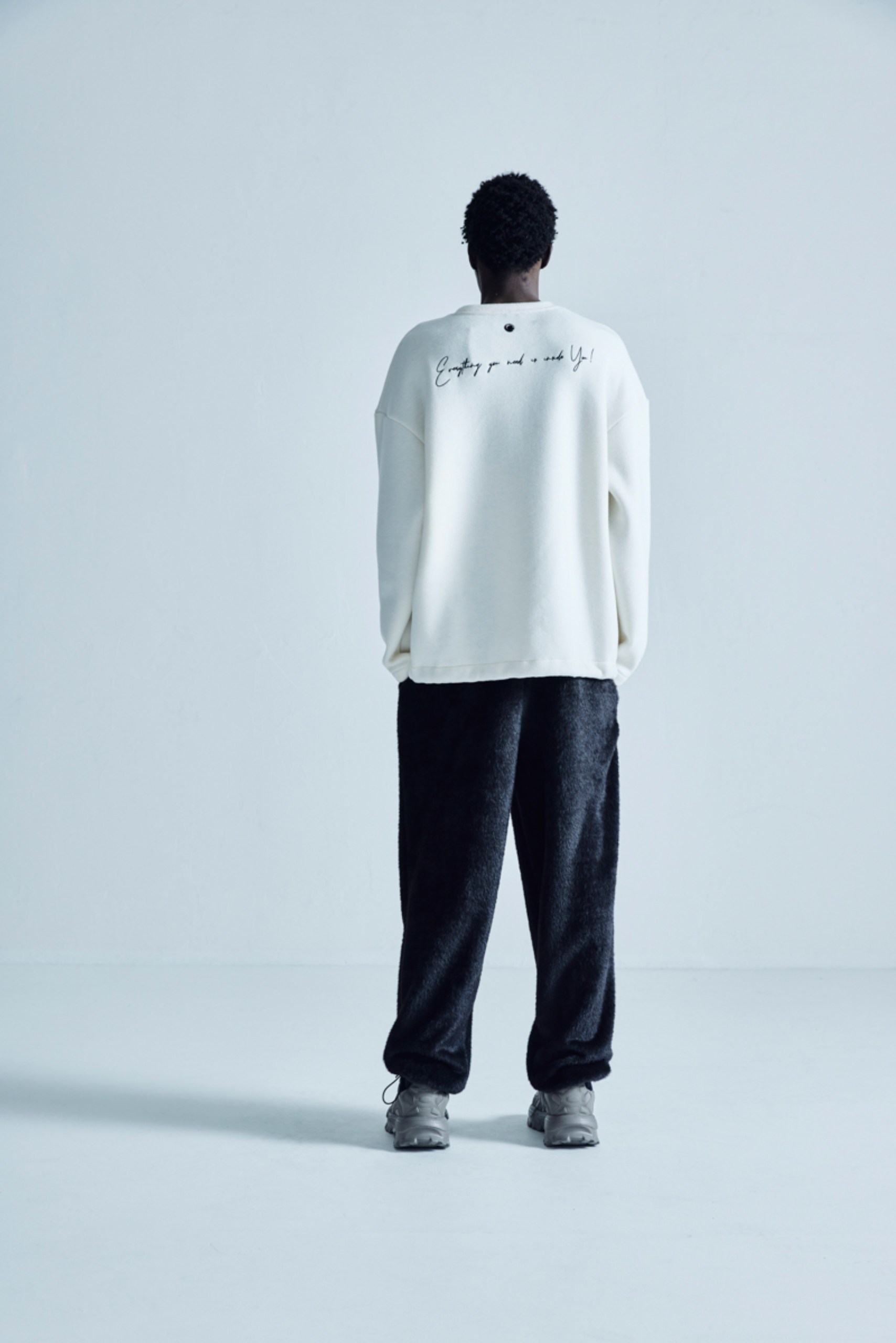 Warm crew neck with embroidery on back, reference to the world of underground music and culture, with a vintage touch.
